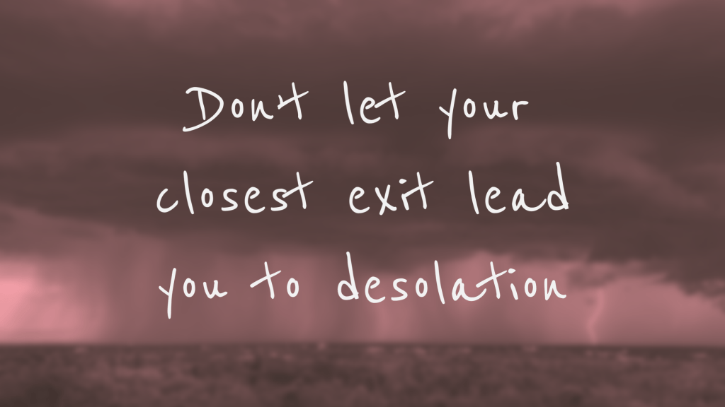 Because safety has taken its own meaning in her wounded mind. Anything that remotely mirrored what used to be heightened her paranoia. Flashbacks were visual reminders to keep her guard as high as the walls she built. This is how she remains safe in her warped life of emergency exits. Trauma has a way of doing that. Unhealed brokenness is the fuel for offense to take flight. It was easy for her to read more into things when her vision was smeared with anguish. The exits she built to retreat were actually walls to stay confined in her past experiences. It was the closest exit for her because it was all she knew. How else can I protect myself lest I keep my guard up at all times? Cutting people off became her favorite sport. She convinced herself that this was the best way to deal with anything that presents itself as discomfort or an inconvenience.