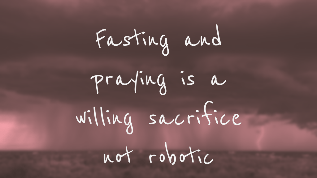 Which brings me to my first point, to have the right heart when fasting praying. Again, this is not a robotic routine, but an intimate one. We get to seek God on a level the world cannot fathom. Thinking of how much it would take to talk to the King of England and all the barriers that come with it. When we can have free and easy access as children of God to commune with the King of kings! Moreover, we are in deeper connection with Him through our obedience and sacrifice of certain food and drink. My next point is to not beat yourself up if you break your fast. It can be tempting to live in this world while fasting and praying. The office parties, to holiday leftovers, can leave anyone feeling enticed to eat what they shouldn’t. Go to God when you break fast. He knows what you will do before you do. He wants to comfort you and help you finish strong! When I broke fast before, I felt so embarrassed like the angels in heaven were laughing at me. God’s Love encompassed me to try again. Honestly, the food was not even worth it. After eating it, I did not feel as full as I thought I would. Additionally. my stomach was not ready to eat it due to its current state of fasting.